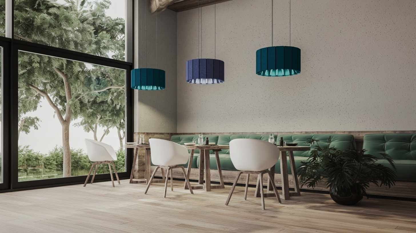 Beam brings playful sophistication with its colorful acoustic shades that dampen noise while casting a warm ambient glow. A perfect fit for cafés, casual dining and creative interiors where color, comfort and calm coexist effortlessly.