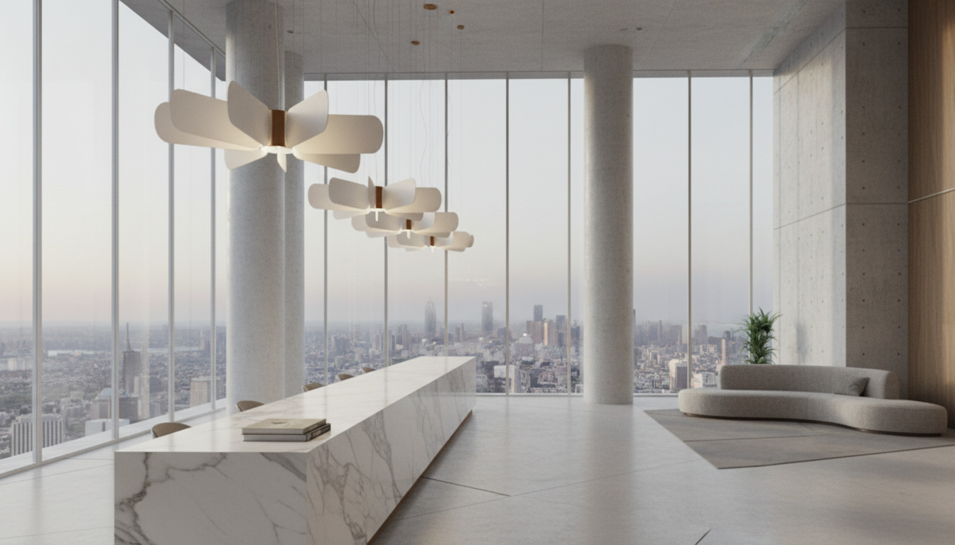 Eve 02 features fluid, organic acoustic forms that emit a warm, diffused glow. Perfect for high-ceilinged spaces, luxury lounges and hospitality environments where sculpture meets sound control.
