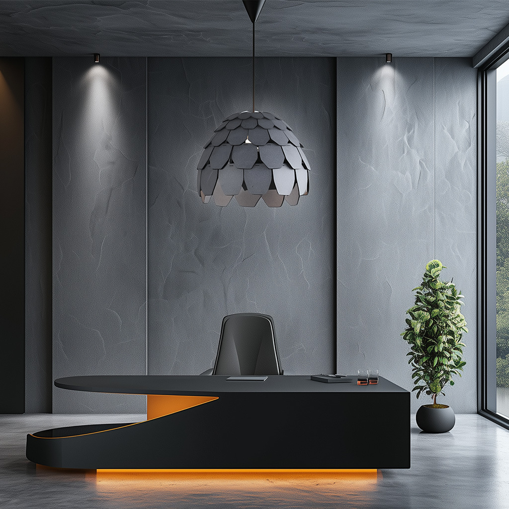 Glim features overlapping acoustic panels that reduce echo while casting a delicate downward light. Perfect for office corners, intimate nooks and refined spaces where ambiance must feel composed and understated.