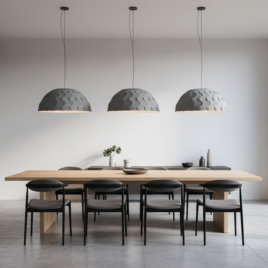 Lyn is a minimal, rounded luminaire that emits a soft glow ideal for large communal spaces. Its acoustic shell absorbs sound, bringing clarity and comfort to dining rooms, workspaces and social environments. Simple, elegant and quietly present.