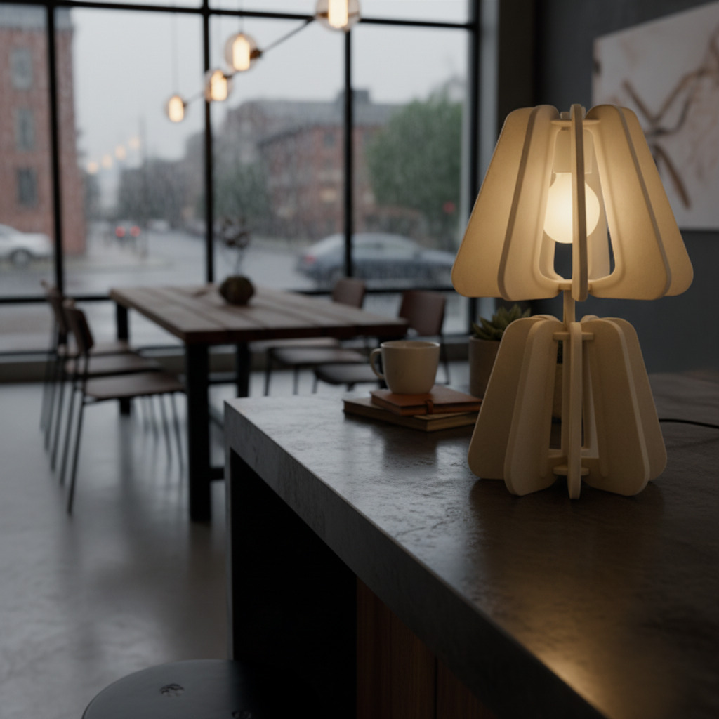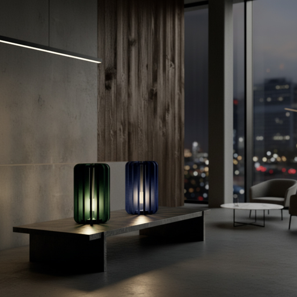 Table Spark adds intimacy through its warm, concentrated glow and acoustic shade that softens surrounding noise. Designed for dining setups, reading corners or hotel lounges, it anchors the table experience with refined calm.