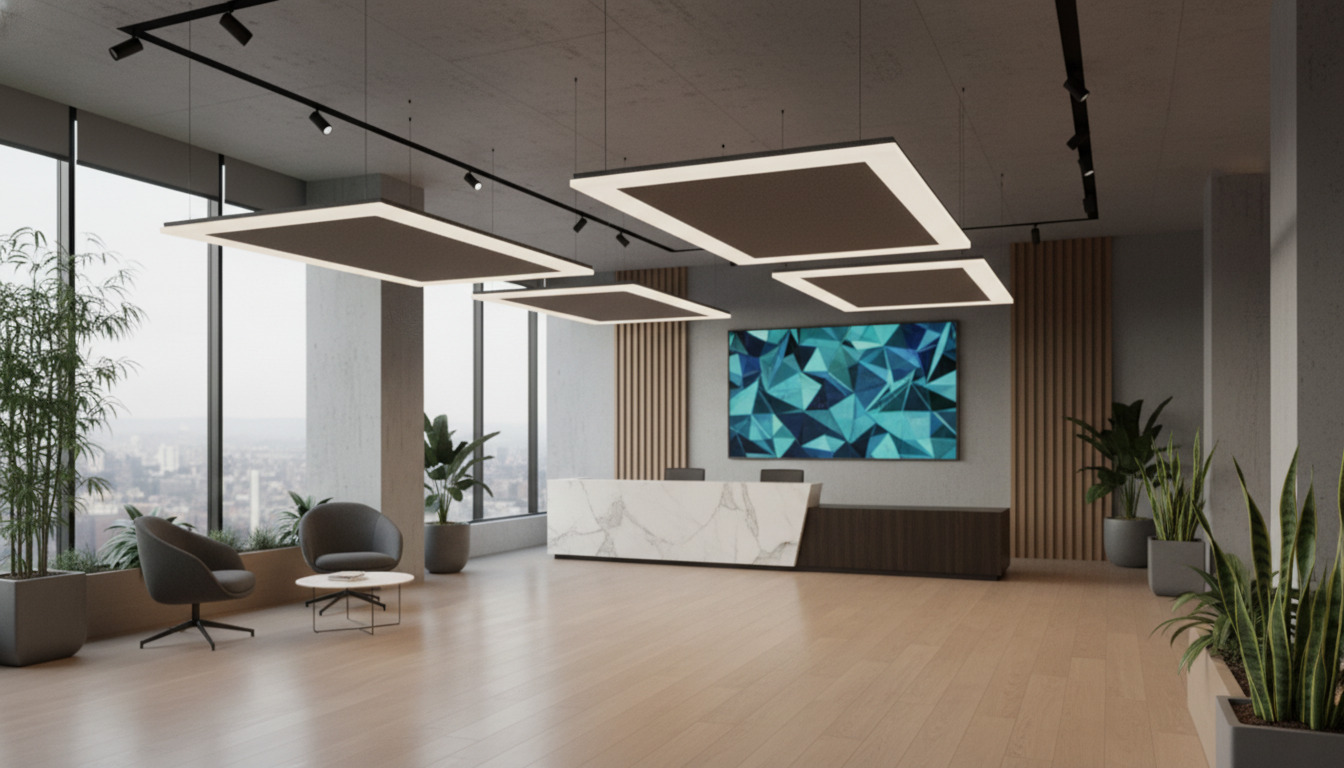 Velin introduces an architectural rectangular form that casts a soft, diffused light while its acoustic panels absorb resonance from above. Ideal for modern lobbies, collaborative spaces and refined corporate environments.