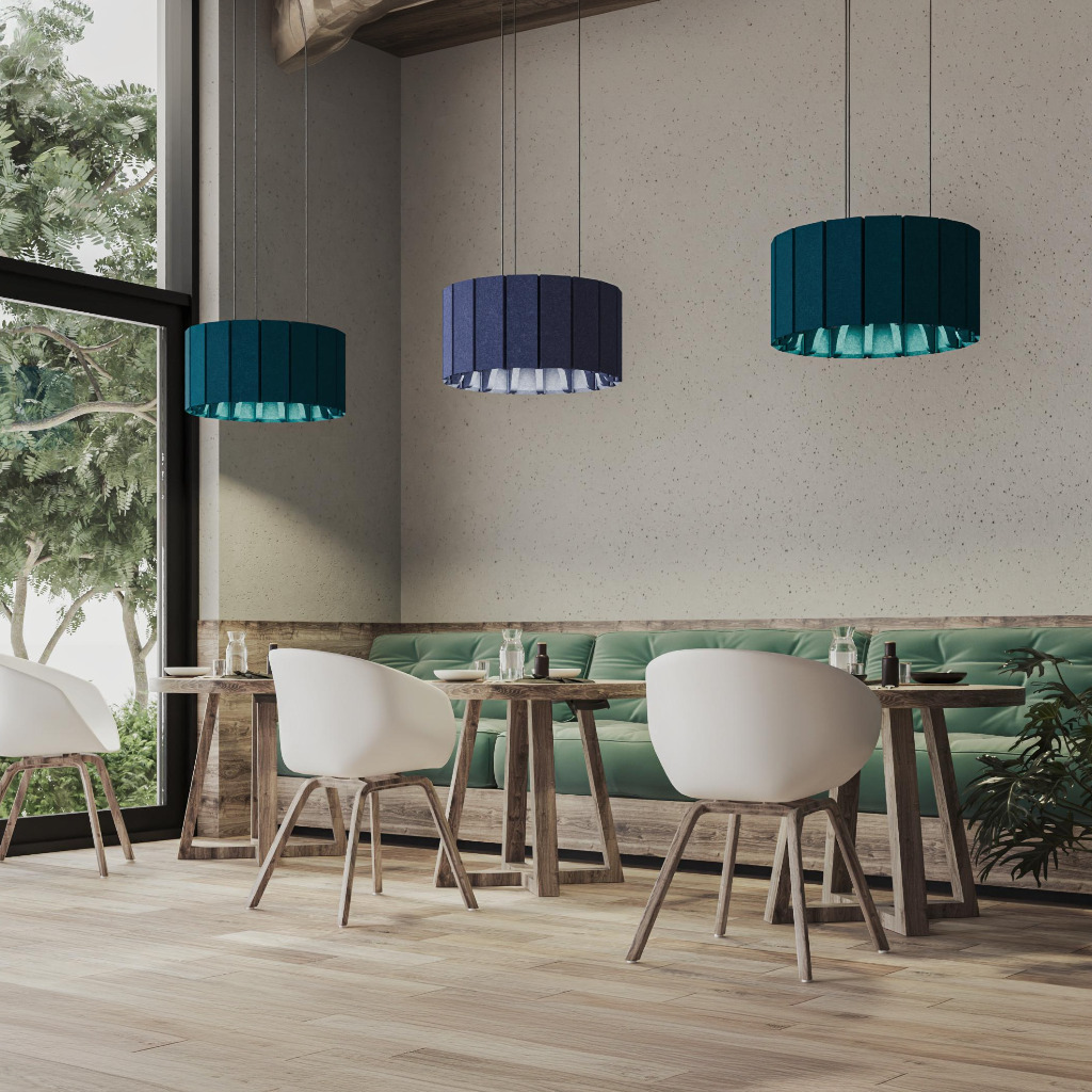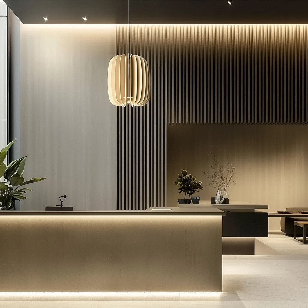 Vibe redefines lighting as a vertical, atmospheric experience—an airy piece that radiates warm clarity while softening spatial reverberation. Its smooth, sculptural form allows light to fall with intention, providing visual comfort and acoustic balance in receptions, worktables, and corporate spaces. A contemporary accent that brings rhythm and serenity.